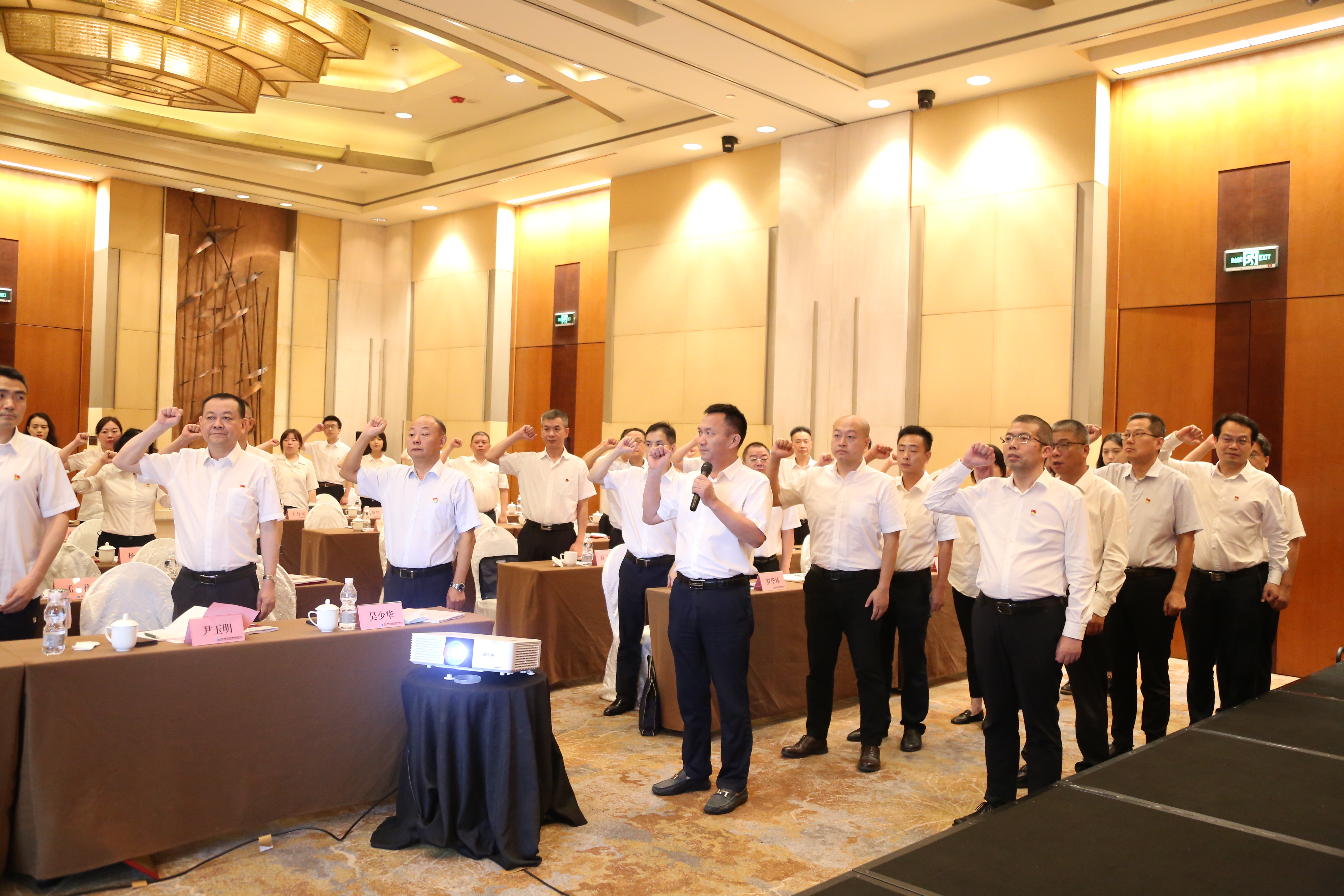 “我志愿加入中国共产党,拥护党的纲领,遵守党的章程……”铿锵有力的誓言响彻会场。现场,集团党委委员、副总经理李成俊带领集团2022年新发展党员代表进行入党宣誓,会场其他党员同步重温入党誓词。