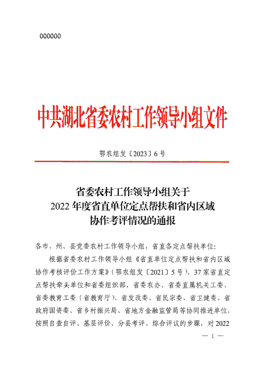 详见《关于2022年度省直单位定点帮扶和省内区域协作考评情况的通报》(鄂农组发〔2023〕6号)