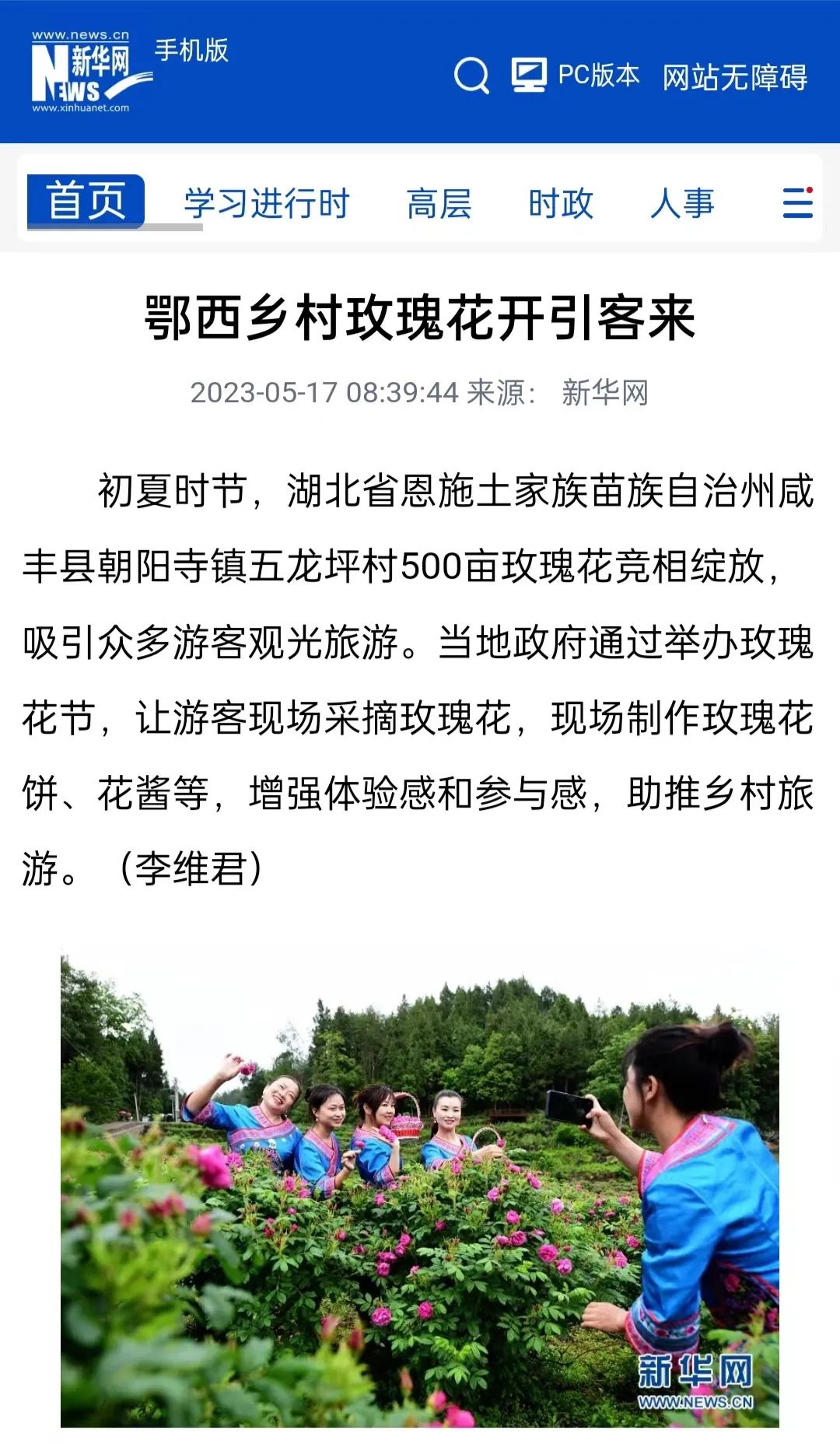 规划以玫瑰花种植为五龙坪村产业发展的主攻方向。5月7日,在咸丰县各级领导、单位的大力支持和村中以“产业带头人”为代表的村民们的积极响应下,村第二届玫瑰花节盛大开幕,现场人头攒动。从村民脸上的笑容可以看出,产业发展充分提振了信心,实现产业振兴的良性循环,为推进五龙坪村的整体振兴贡献了澎湃力量。同时,玫瑰花节盛况受到新华网关注报道。